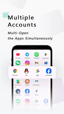 - Run multiple accounts of WhatsApp, Instagram, Telegram, Messenger, and other social apps simultaneously.